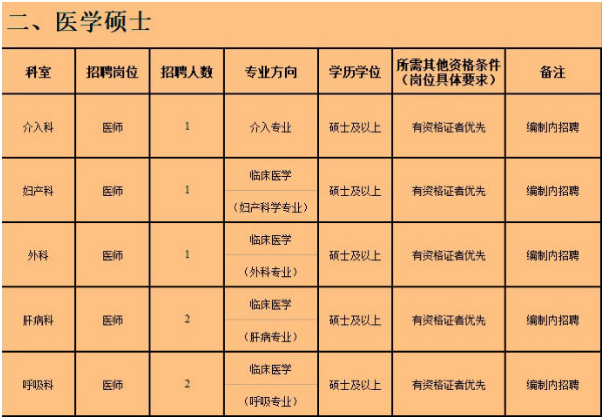 因醫院不斷發展壯大,四座大樓拔地而起,新興科室蓬勃發展,為進一步提升醫院發展能力,努力開創醫院事業發展的新局面,現面向國內外公開招聘,誠招醫學博士8人、醫學碩士7人、緊缺專業本科生50人。
