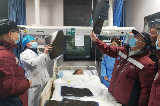 當日中午,華西醫院西藏醫院的3名專家主動請纓攜帶移動CT車,與華西醫院本部派出的6名專家于當晚分別抵達定日縣人民醫院、日喀則市人民醫院執行地震傷員救治任務。日喀則海拔超過3800米,余震不斷,給救治工作帶來不小的挑戰,大家一邊吸氧一邊討論病情,工作從早上持續到晚上。一名多發骨折的82歲老人經過接力救治脫離生命危險;一名因胸廓受壓繼發缺血缺氧性腦水腫的5歲孩子不僅從死亡線上被拉了回來,還通過“空中生命通道”轉運至成都。